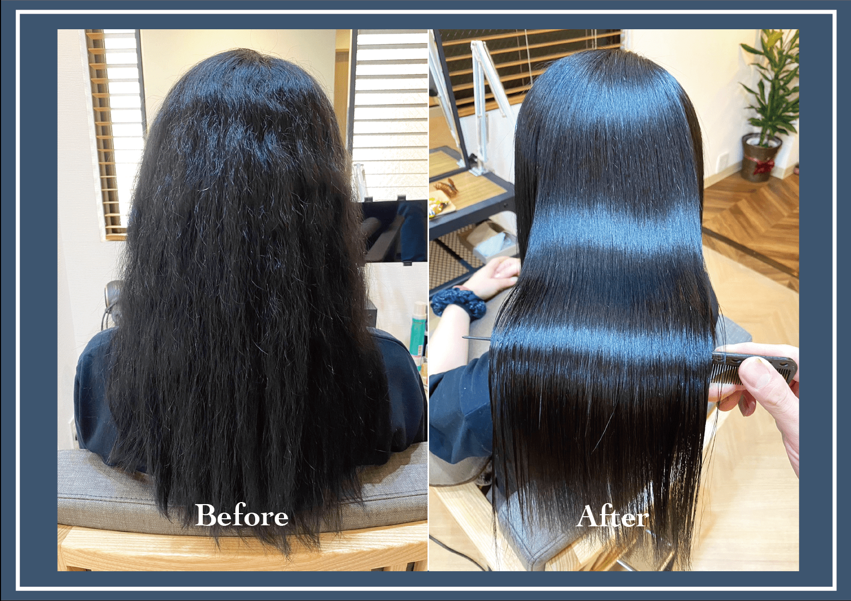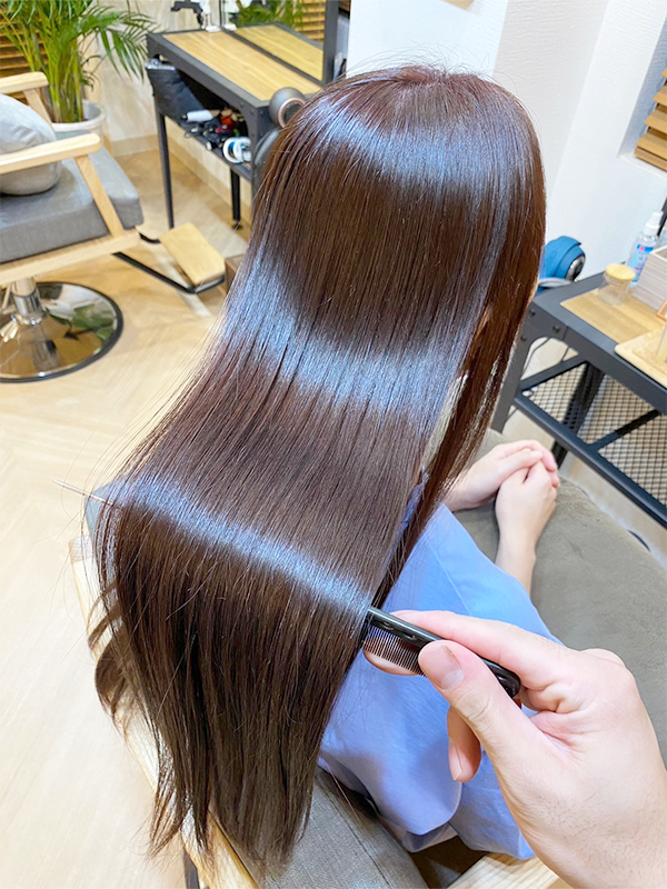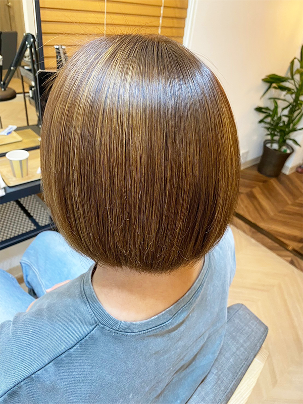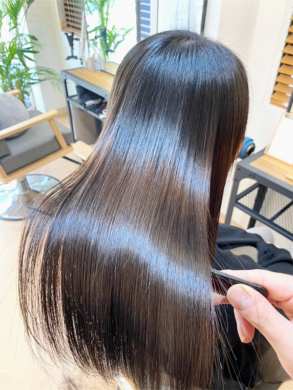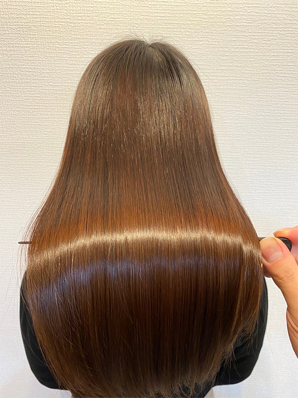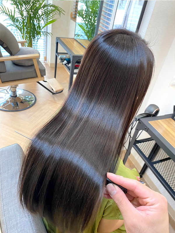 これまで他店で縮毛矯正を何度も経験しているのですが、 今回の仕上がりと手触りは本当に段違いで家族からも 「いままでの(縮毛矯正後の)感じと違うね」と驚かれました!!!
